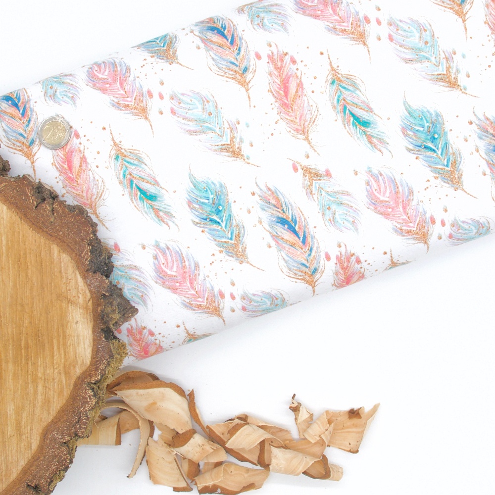 French Terry Glitter Feather weiß