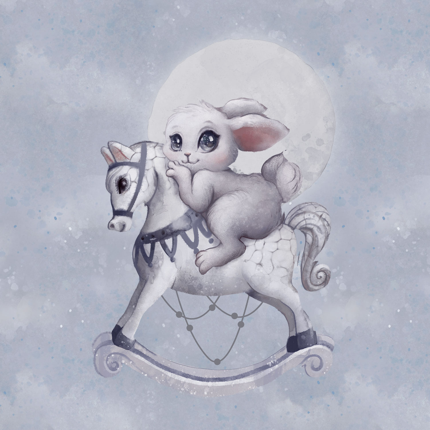 French Terry - Panel S Hase auf Schaukelpferd "Mystisch"