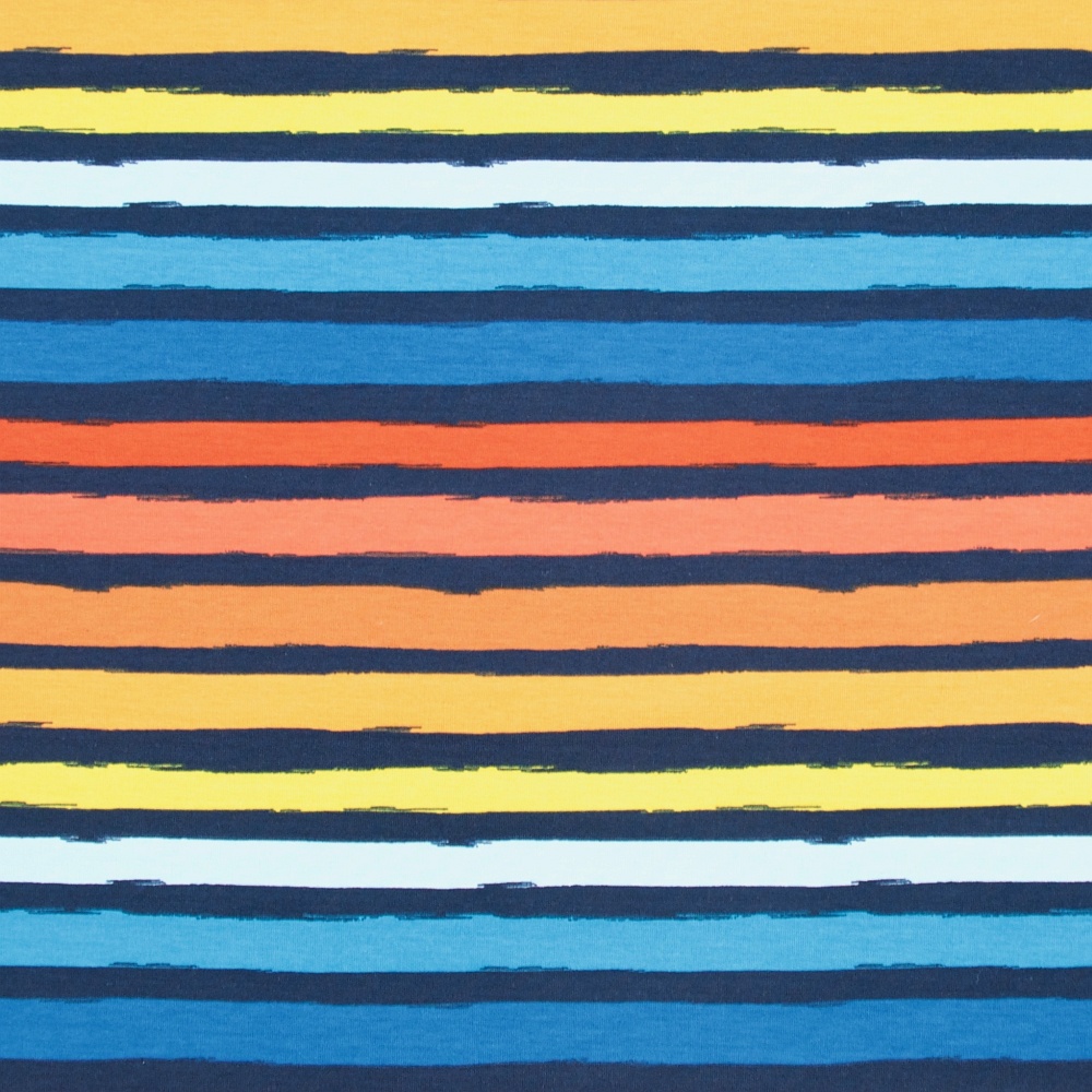 French Terry Sommersweat STRIPES Blockstreifen blau rot gelb