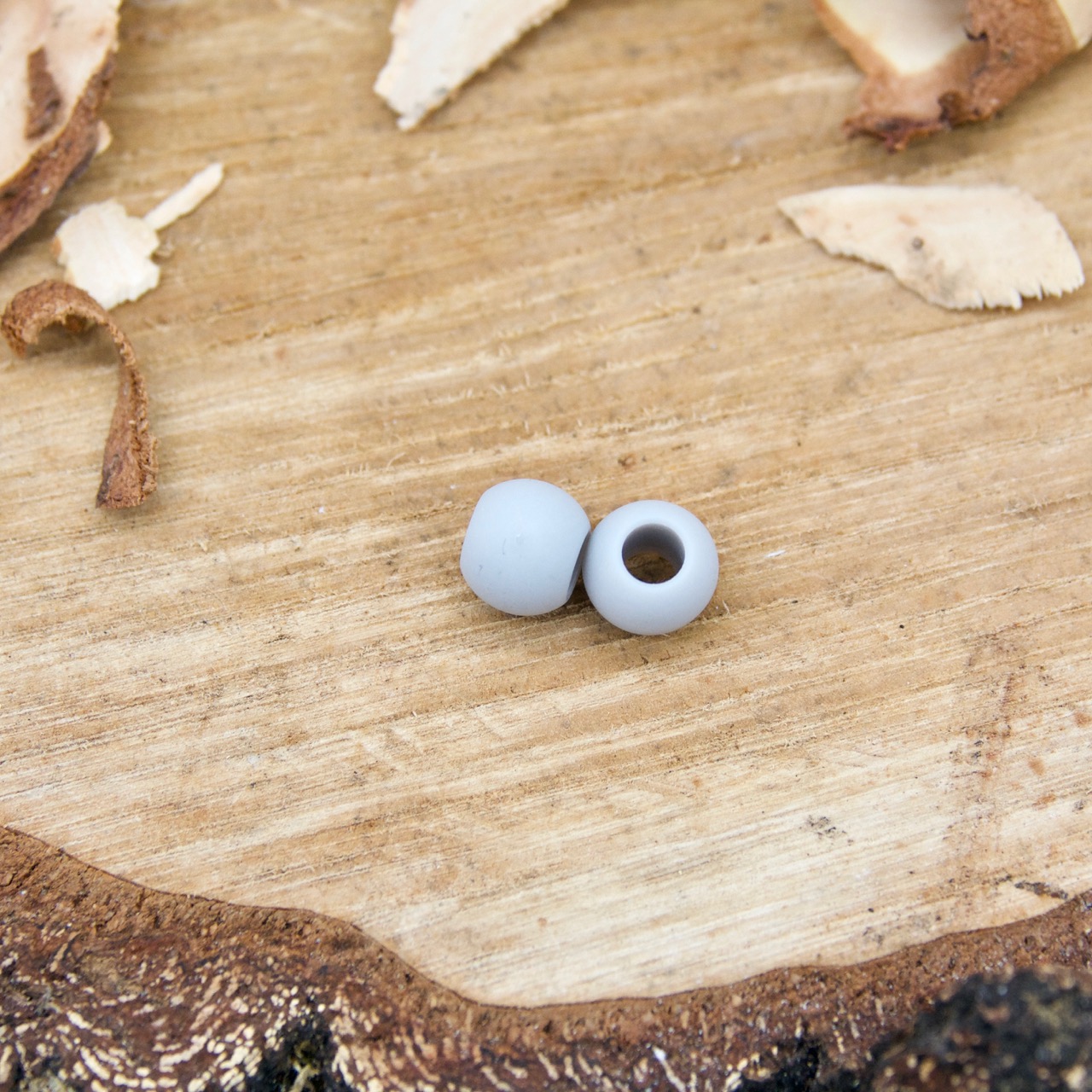 Kunststoffperlen mit größerem Ziehloch sind matt mit farbiger Oberfläche.