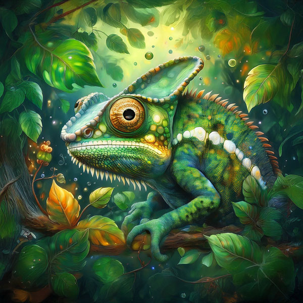 Samt-Panel Dschungelblick Chamäleon