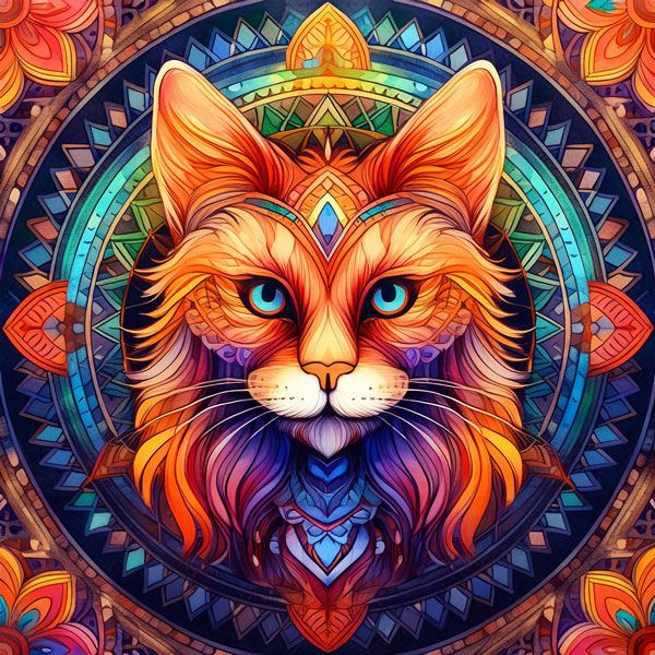 Samt / Velour Panel Mandala „Katze“ Main Coon Red