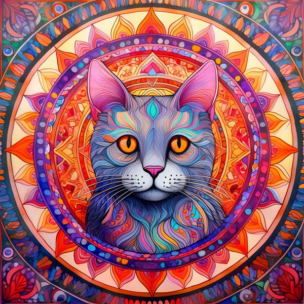 Samt / Velour Panel Mandala „Katze“ Britisch Kurzhaar