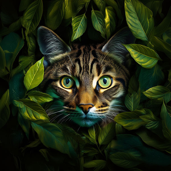 Samt / VVelours-Panel "EKH" in Blätter (Europäsche Kurzhaarkatze)