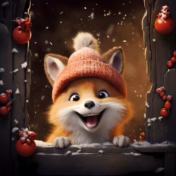 Samt / Velours-Panel "Happy Fox" lustiger Fuchs mit Mütze